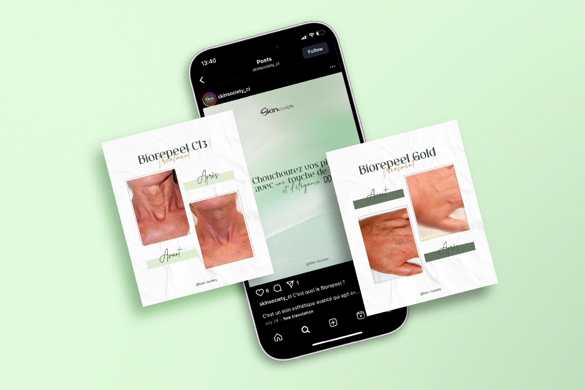 • Elegant and minimalist social media visuals aligned with the new identity